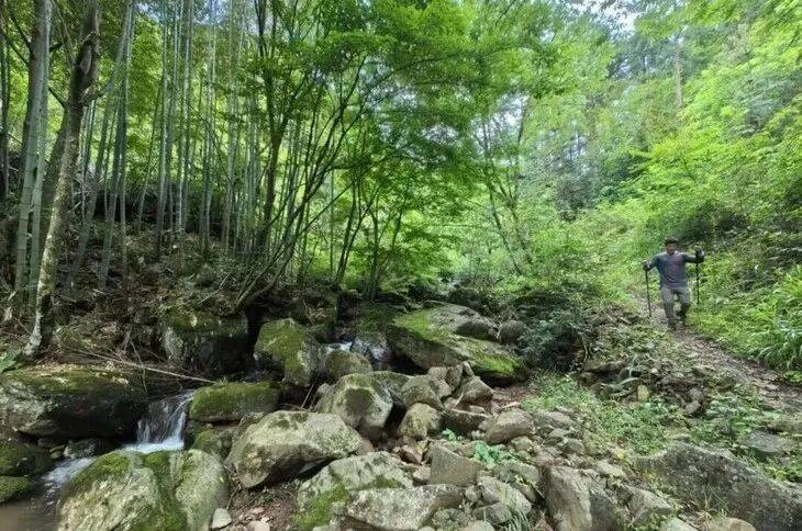 这是古时候安吉通临安的交通要道。古道是山石铺垫,不是很规则,两边有上千年的金钱松,毛竹林,小竹林,还有各种野生果树。在道路边上还有三叠瀑,清苔瀑布群等大大小小的瀑布,山石,青苔组成的自然盆景,值得一看。