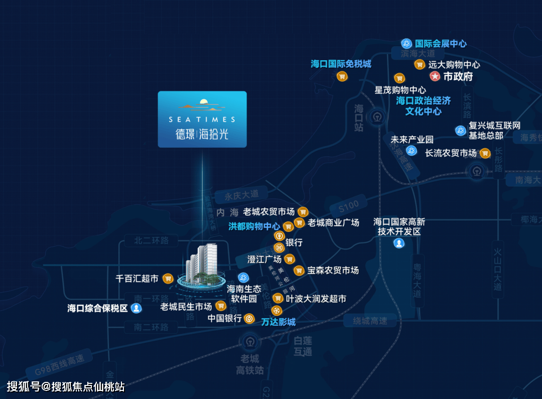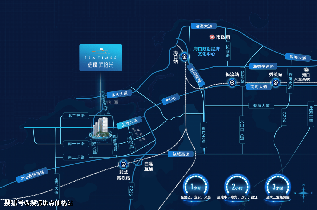 项目位处工业大道与欣龙路交汇处,是城市中轴线核心地段,滨海大道、环岛高速G98、南海大道、海秀快速路4条主干道直通海口,高铁、市域轻轨融入大海口半小时经济生活圈。