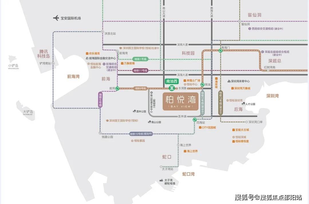 在深圳湾、前海湾、蛇口湾三湾汇聚的“超豪半岛”核心腹地,一座由豪宅专家恒裕集团携35载顶豪经验倾力打造的200米垂直综合体——恒裕柏悦湾,正以“中央智区”的稀缺占位与“垂直城市”的创新理念,成为南山精英圈层资产配置的焦点之作。项目雄踞南山区东滨路与向南路交汇处,地处深圳七大总部基地环绕的几何中心——后海金融总部、深圳湾超级总部、前海深港合作区、蛇口国际海洋城、南山科技园、留仙洞总部基地、腾讯全球总部环伺周边,未来预计汇聚超260万高薪人才,是名副其实的“超百万人才的中央智区”。作为地铁9号线南油西站上盖物业,项目从B出口可直达社区,1站换乘12号线号线分钟轨道交通圈可覆盖福田CBD、前海、宝安机场等核心区域,同时紧邻东滨路、南海大道、广深沿江高速及滨海大道,形成了“轨道+路网”的全维高效通勤体系。