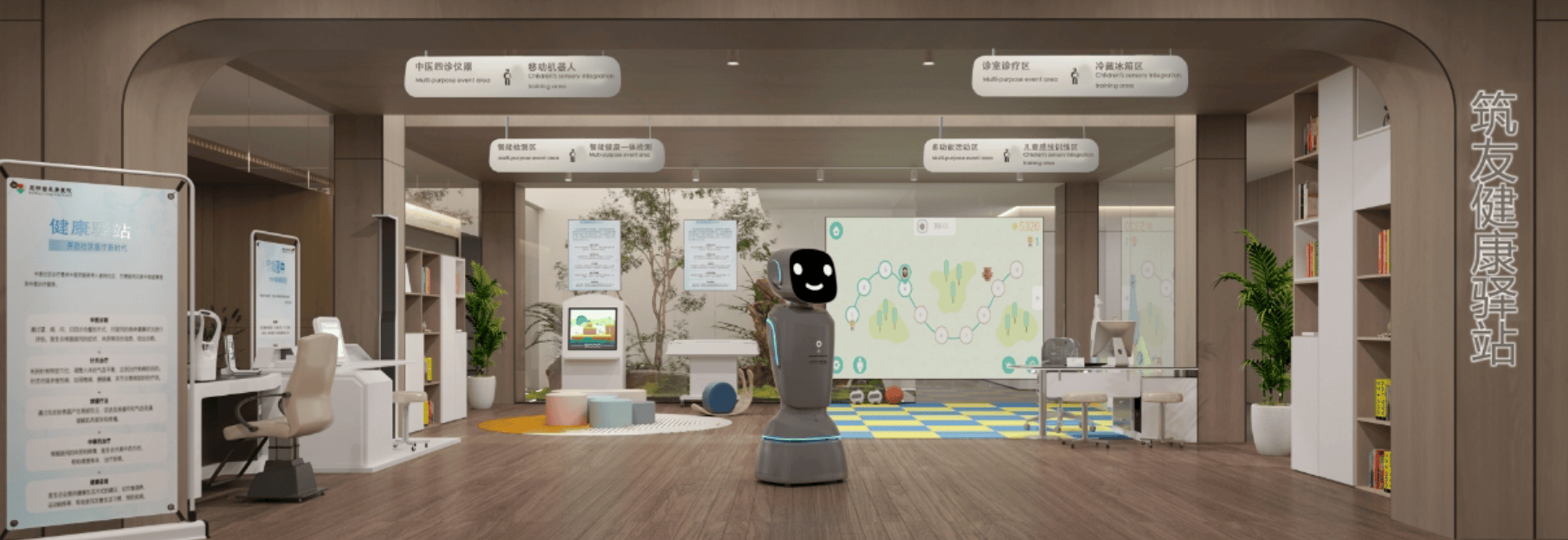 云南首家全生命周期健康守护社区:在筑友双河湾社区里,健康关怀也在下楼可达的范围内。智能健康驿站随房屋交付进驻社区,以「数据沉淀-智能预警-服务响应」闭环,让业主的健康时刻被温柔守护。