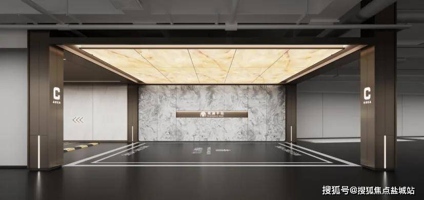 酒店级迎宾式光厅设计理念搭配顶部透光仿云石装饰,地下车库大理石纹理的古典雅致与现代艺术的灵动韵律升华着业主的归家之旅。