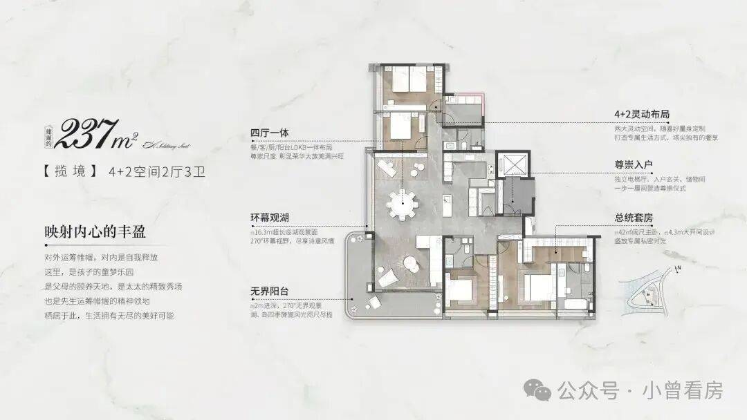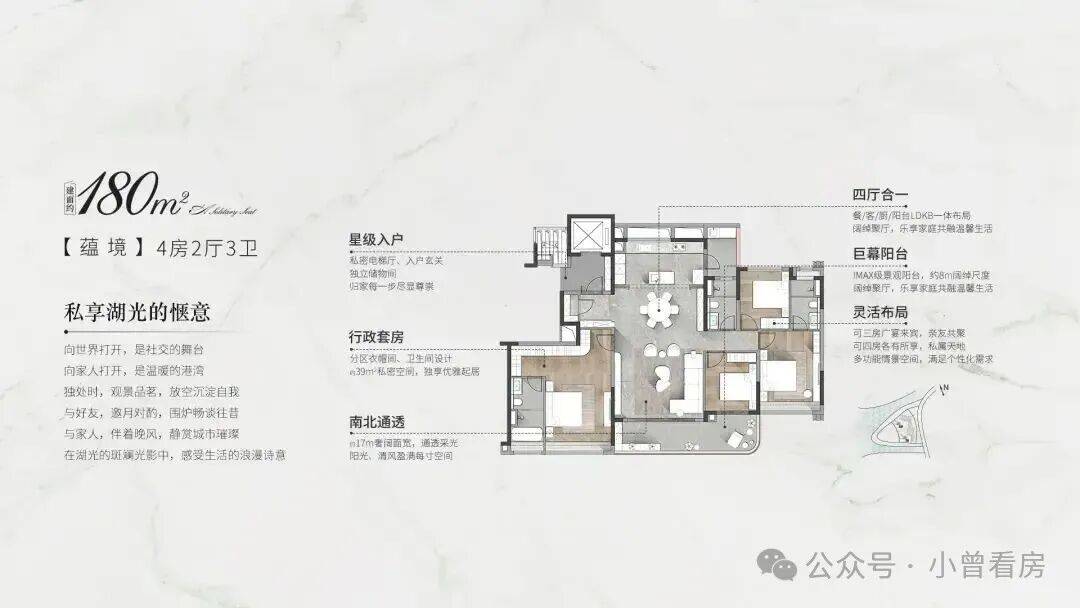 中海天幕湾,深度考究城市层峰人物的生活需求,精心打造约180/237㎡湖心岛居大平层,全面升维空间的尺度感与居住的舒适度,革新大城生活想象。